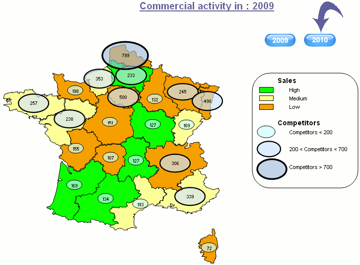 Once your data visualisation(*) is drawn, users will only need to select the right data in order to make BeGraphic automatically refresh the coloured map (as does Excel's graphs when you change your values inside cells).