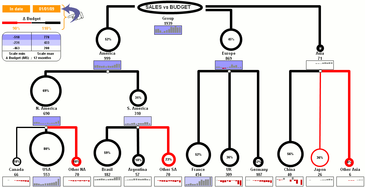 Thus the update is automatic for all users who bought a Business Intelligence tool including an Excel add-in (e.g.: Microsoft PowerPivot, Oracle Hyperion, Hyperion Essbase, IBM Cognos TM1, SAP BW, Infor Alea, Palo Jedox ...). But the most important thing in this dashboard is the ease of understanding of the specific graphs especially made for this company. Until BeGraphic, only newspapers could afford to hire infographics experts to create new types of data representation. Now you can do it by yourself !