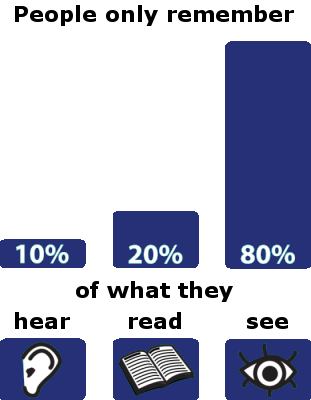 To take a decision, your brain uses 10% of what it heard, 20% of what it read and 80% of what it saw. To make an effective decision, scientists tell us that it is more efficient to send the information to your brain as visually as possible. This is what BeGraphic does by bringing better visualization for your reports and presentations.